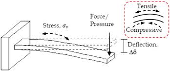 彎曲疲勞: 彎曲疲勞是最常見的疲勞破壞模式。這種失效模式對珠擊處理反應良好,因為最高(拉伸)應力位於表面。 如懸臂梁承受彎曲的負荷,樑的偏轉導致頂面拉伸,使其處於拉伸狀態。沿頂面的任何半徑或幾何形狀的變化都會成為應力集中點。 |
