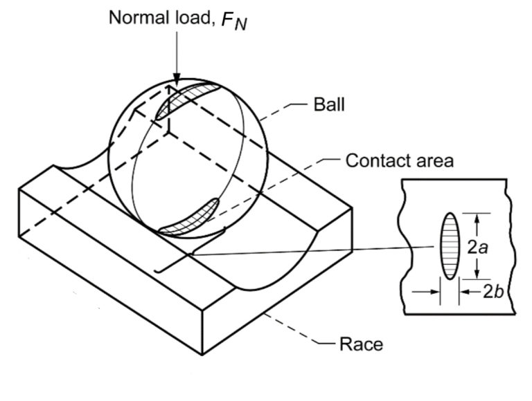赫茲應力 Herzian stresses 當任何兩個半徑不同的表面接觸時,都會存在赫茲應力,即使一個表面是平坦的,當兩個不同半徑的表面接觸並施加負載(即使是極小的負載)時,會形成一個小的接觸面積,並且表面會受到非常高的應力。 這些應力被稱為赫茲(或赫蒂齊安)應力。 在滾動元件線性軸承中,赫茲應力發生在球(或圓柱體)和滾道上。 |