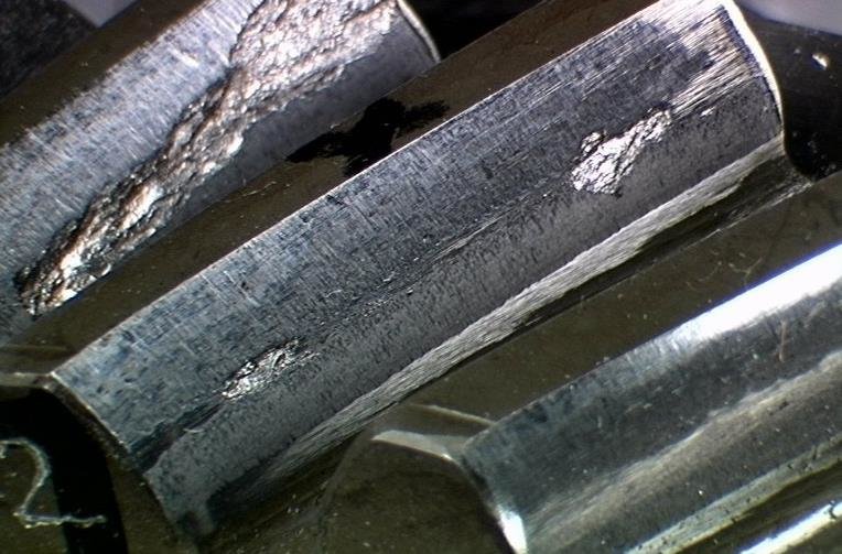 點蝕破壞是由於節線附近的赫茲應力和滑動接觸應力而引發的。當配合表面的凹凸接觸時,負荷是赫茲應力和拉伸應力的複雜組合。如果繼續操作,可能會出現微裂紋。裂痕將繼續生長,直到粗糙體自行分離,留下「凹坑」。 珠擊處理後進行表面光潔度改進製程對於對抗點蝕疲勞非常有益。經由去除珠擊留下的凹凸不平,接觸面積分佈在更大的表面積上。 |